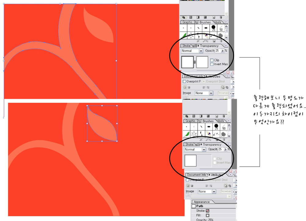일러스트에서 transperarency 에 관한 질문입니다.